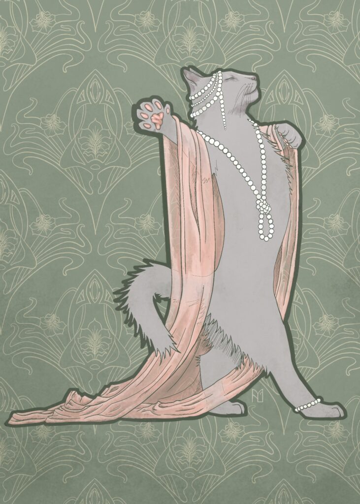 The primary subject, for instance the cat in Élégante, I nearly always emphasize, making the outline significantly more bold. This draws attention to her and creates a clear separation between her and the background, which is especially useful with a more subdued color palette.