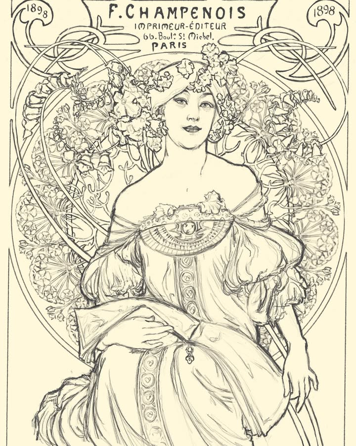 Some of the most well known instances of Art Nouveau were ads and posters. Alphonse Mucha, perhaps the most famous artist of the style, got his start making a poster for Sarah Bernhardt, a French theater celebrity of the time.